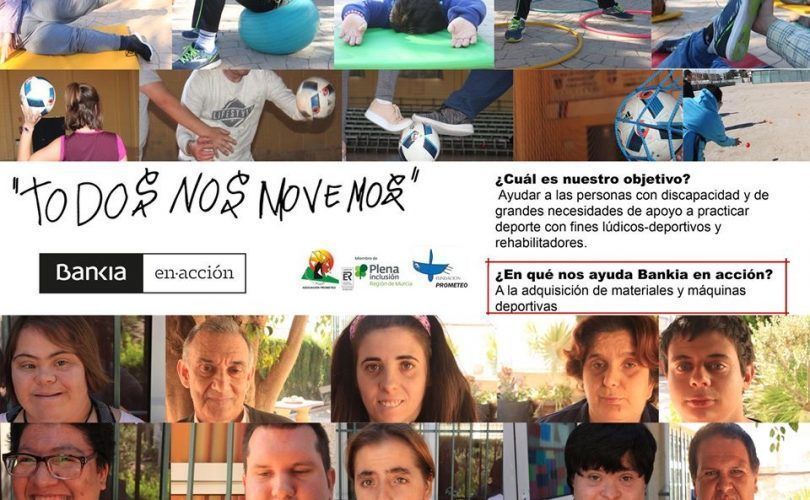 La asociación Prometeo de Torre Pacheco, ha recibido de Bankia en Acción- Red Solidaria 2019, una ayuda para el desarrollo del proyecto “TODOS NOS MOVEMOScuyo objeto es la equipación del gimnasio que albergará el nuevo centro de día.